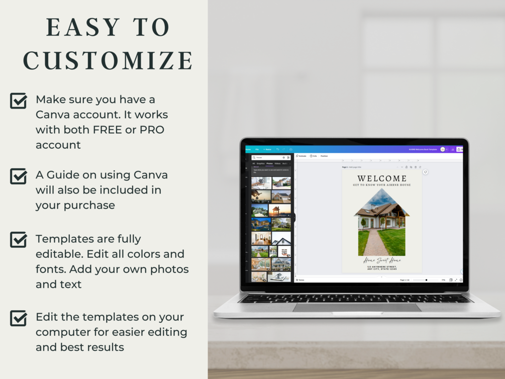 ✅ Personalized and Professional Touch: With the Airbnb Welcome Book Template in Canva, you can easily create a personalized and professional-looking welcome book that will impress your guests and make them feel welcome. By including information about the surrounding area, local attractions, and your personal recommendations, you can help your guests feel more at home and provide them with a better understanding of what your home and community have to offer.