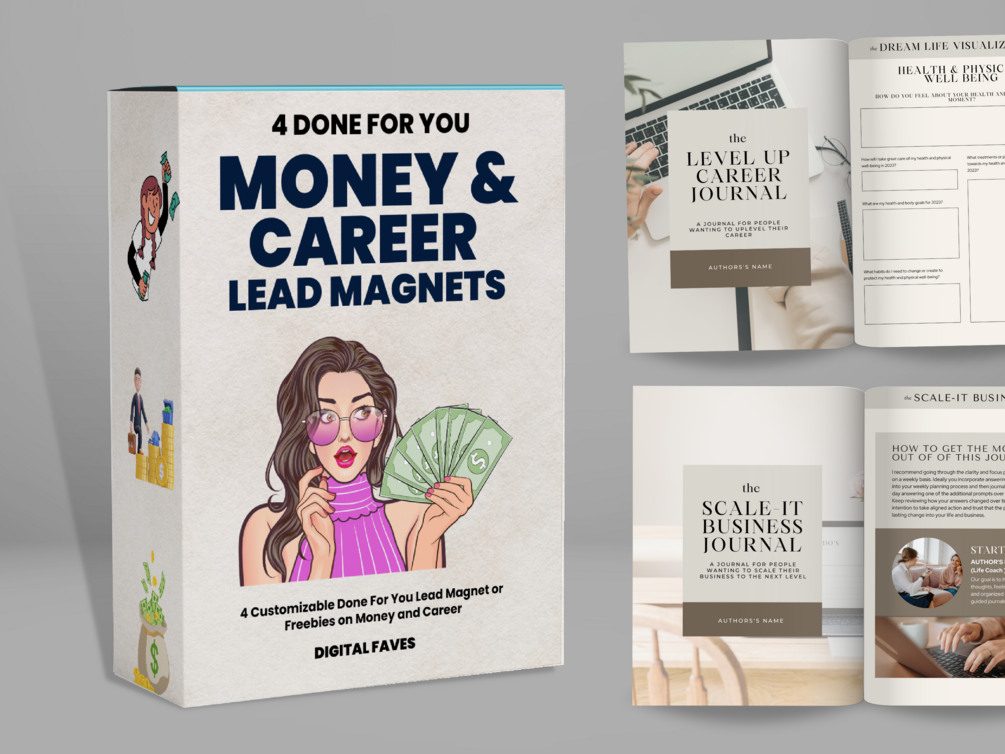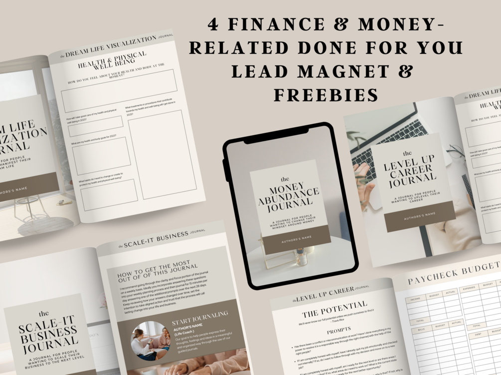 Get instant access to these 4 Done For You Guided Journals on Finance, Career, Dream Life & Money topics.