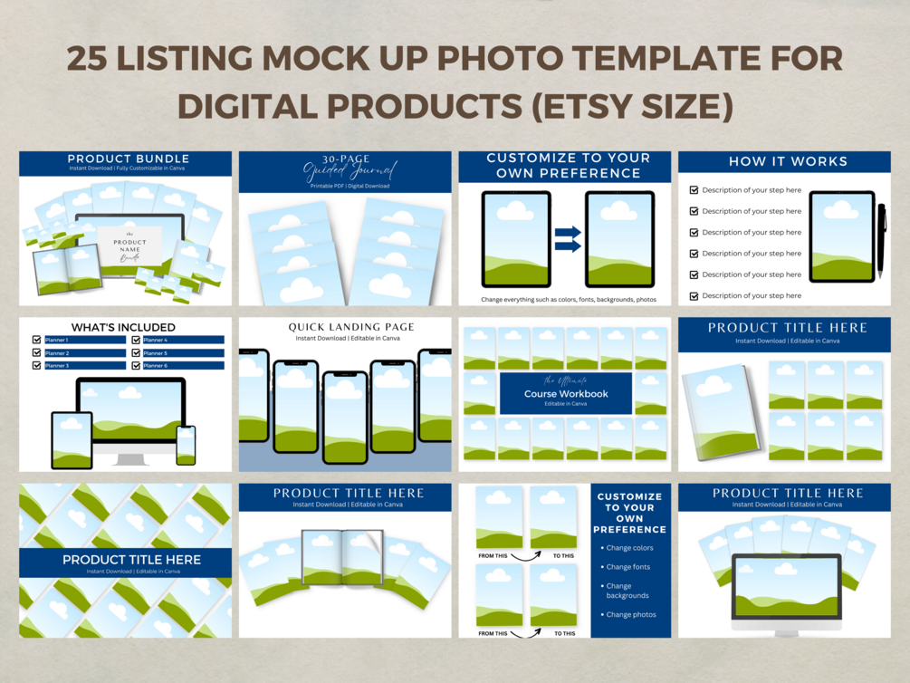 - 25 Etsy Listing Mock-up Photos (for personal use, to help you with listing your products online)